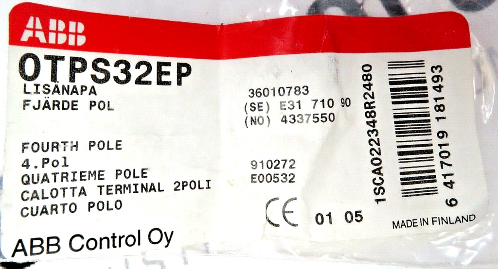 ABB OTPS32EP 32A Fourth Pole for OT16...32 Disconnectors ( ** No Barriers **)