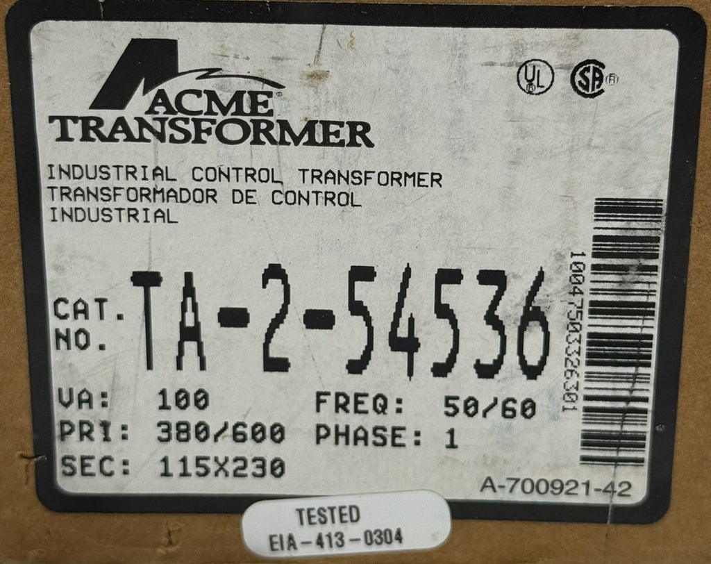 Acme TA-2-54536 Industrial Control Transformer 100 VA Single Phase