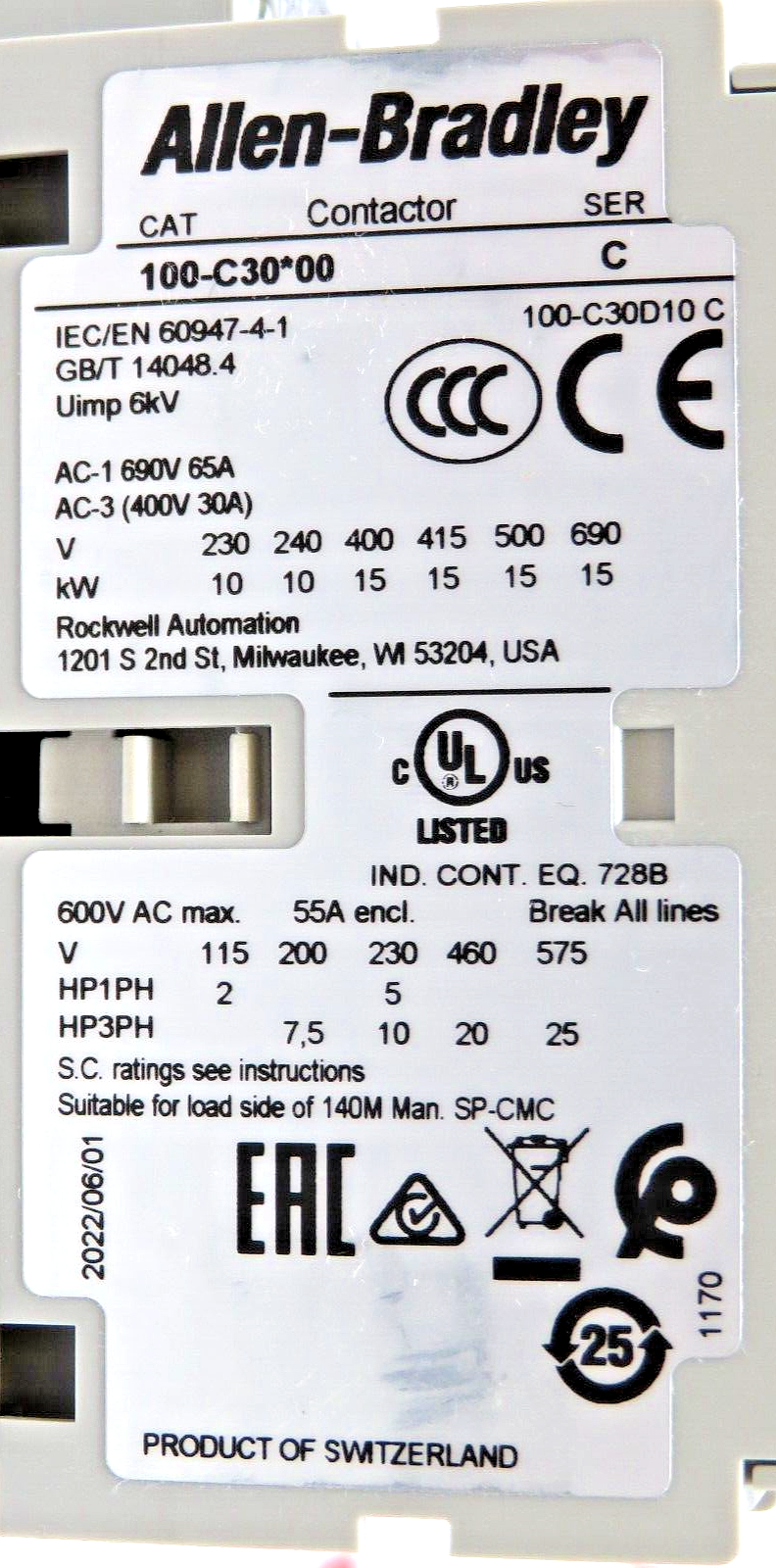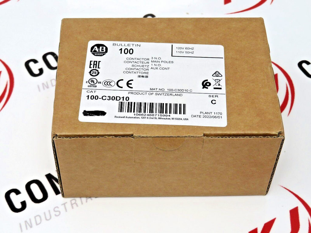 Allen-Bradley 100-C30D10 30A 3-Pole 110/120V IEC Contactor (Open Box)