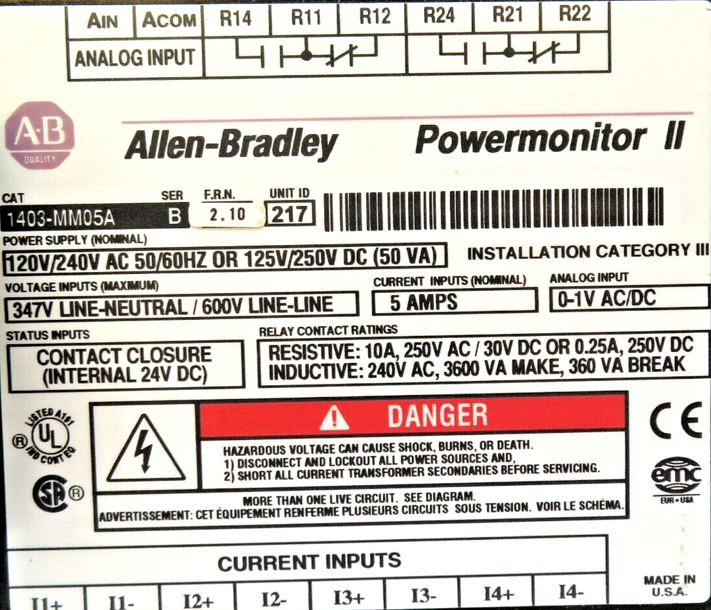 Allen-Bradley 1403-MM05A Powermonitor II / 1403-NDNET DeviceNet Accessory Device