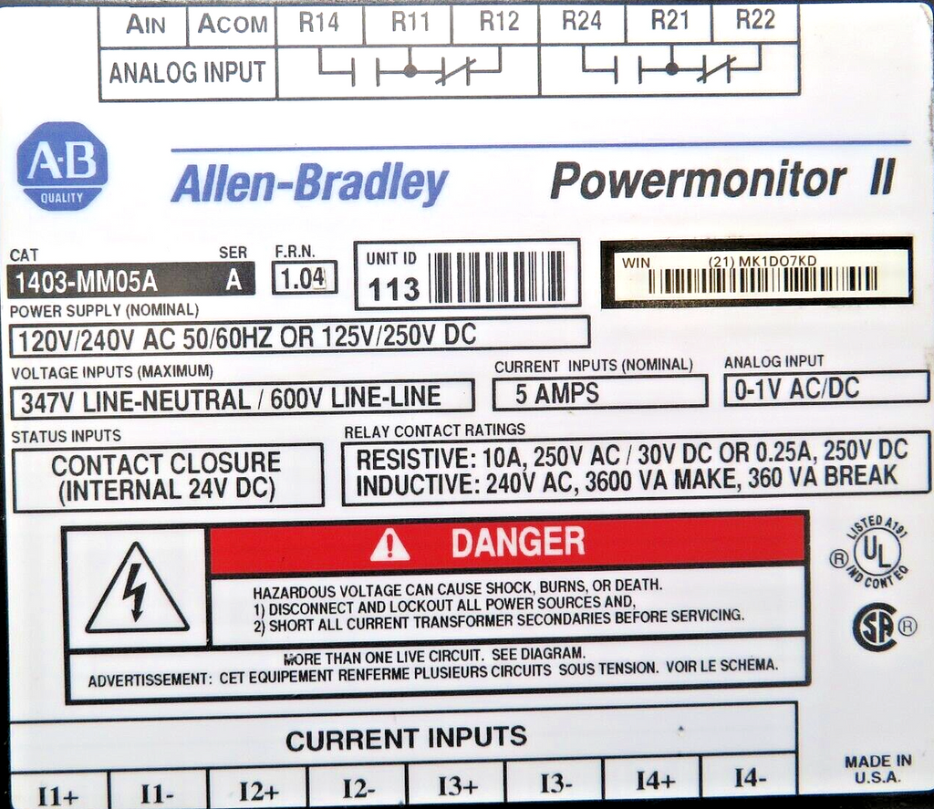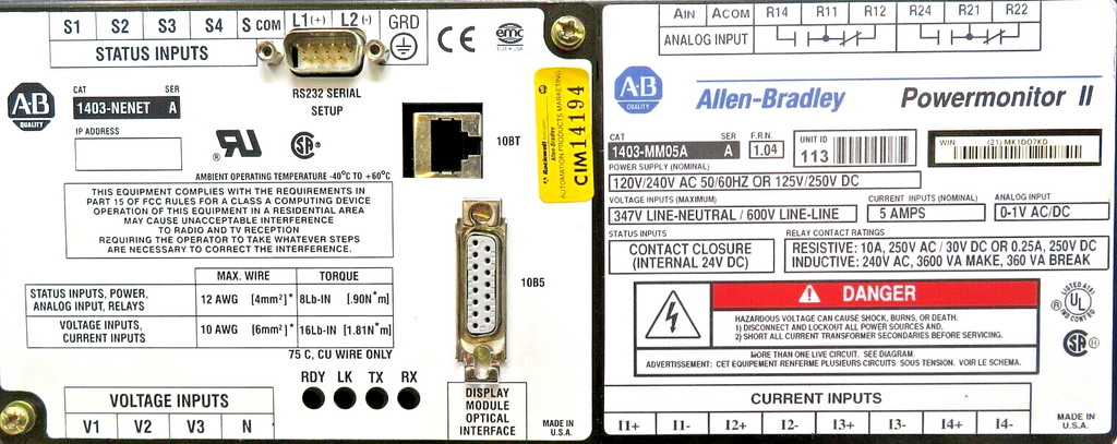 Allen-Bradley 1403-MM05A Powermonitor II Display/1403-NENE Communication Module