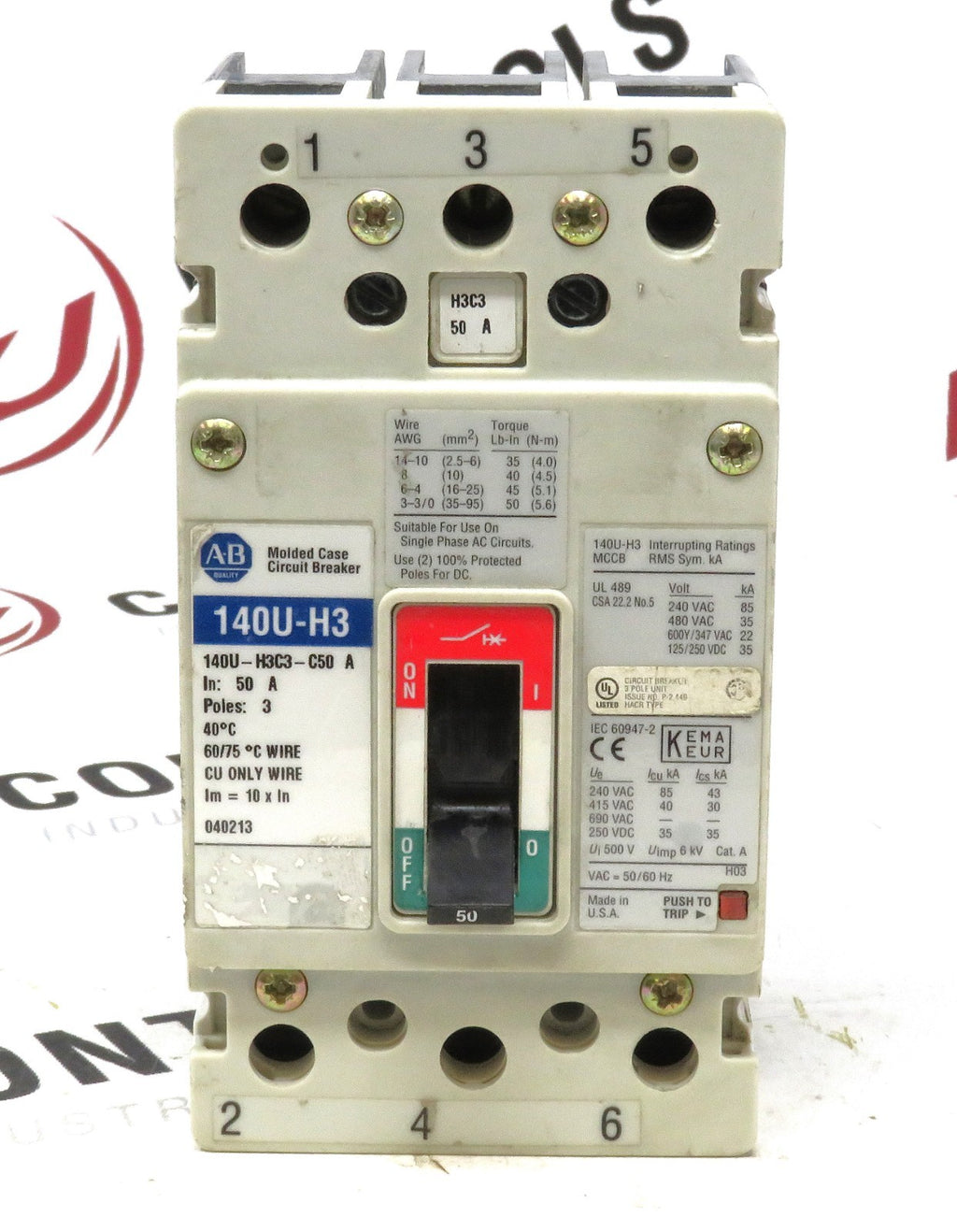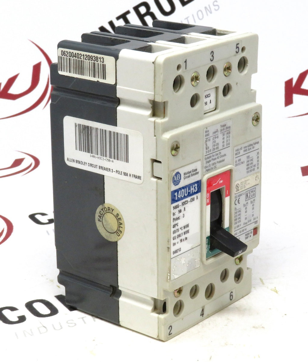 Allen-Bradley 140U-H3C3-C50 Circuit Breaker 3-Pole 50A H-Frame 600VAC