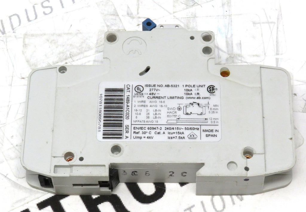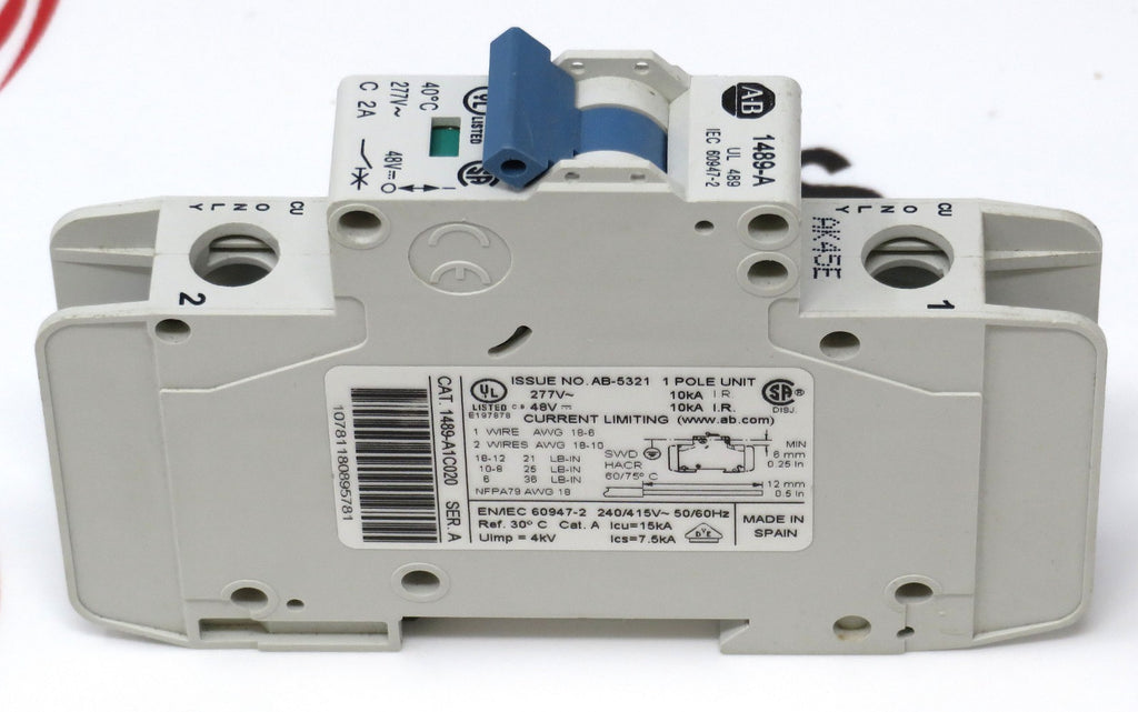 Allen-Bradley 1489-A1C020 Miniature Circuit Breaker 1P 2A C-Curve 277V AC 48V DC