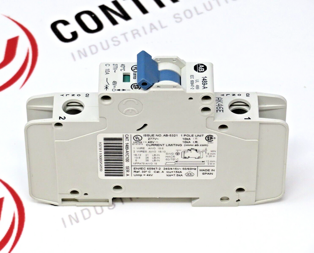 Allen-Bradley 1489-A1C100 Circuit Breaker 10A 1-Pole 277VAC 48VDC 50/60HZ DIN