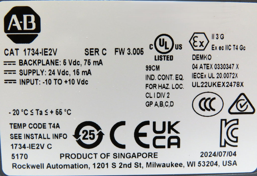 Allen-Bradley 1734-IE2V POINT I/O 2-Ch Analog Input Module 10VDC 15-Bit