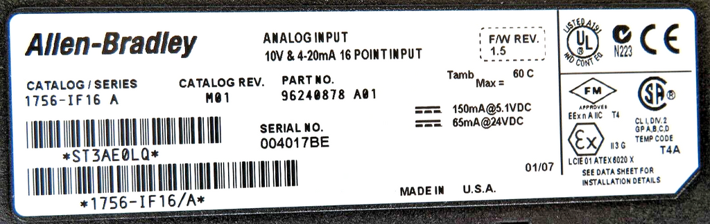 Allen-Bradley 1756-IF16 ControlLogix 16-Point Analog Input Module Series A