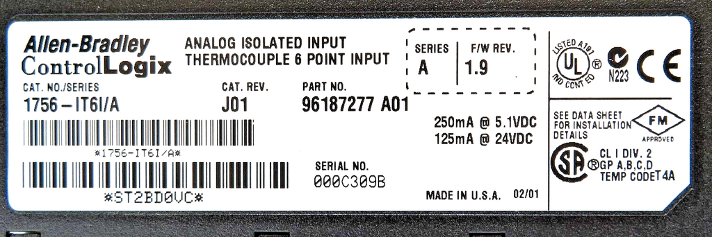 Allen-Bradley 1756-IT6I ControlLogix Analog 6-Input Module For TEMP. Measurement