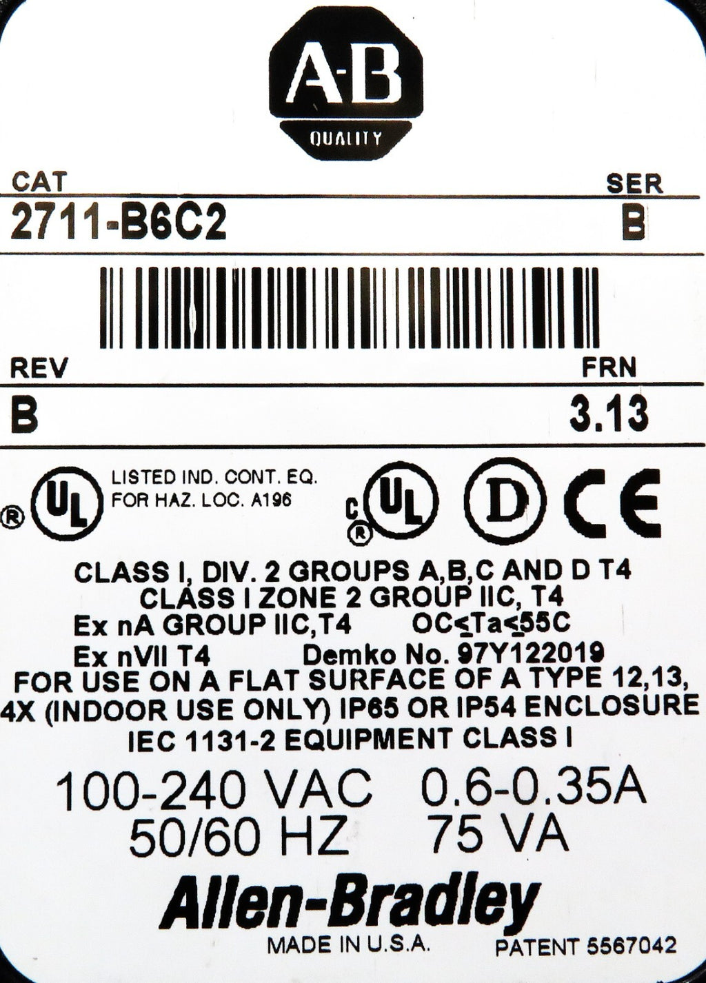 Allen-Bradley 2711-B6C2 PanelView 600 HMI Keypad/Touch DH485 5.7" Color Display