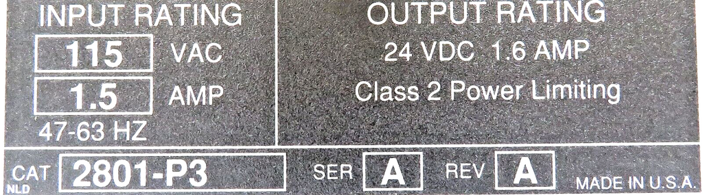 Allen-Bradley 2801-P3 115VAC to 24VDC Power Supply, 1.6A Output