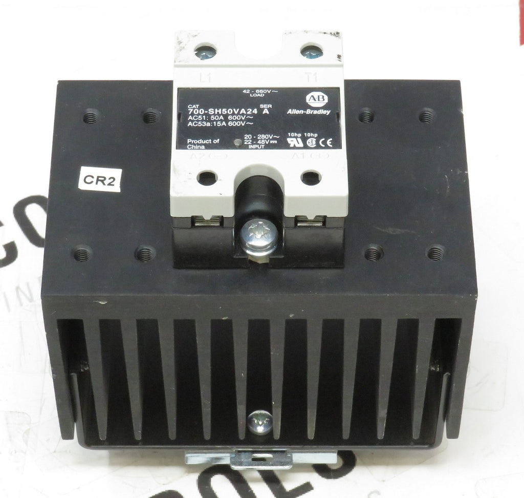 Allen-Bradley 700-SH50VA24 Relay w/ 700-SN50 Heatsink 50A 600V AC SSR