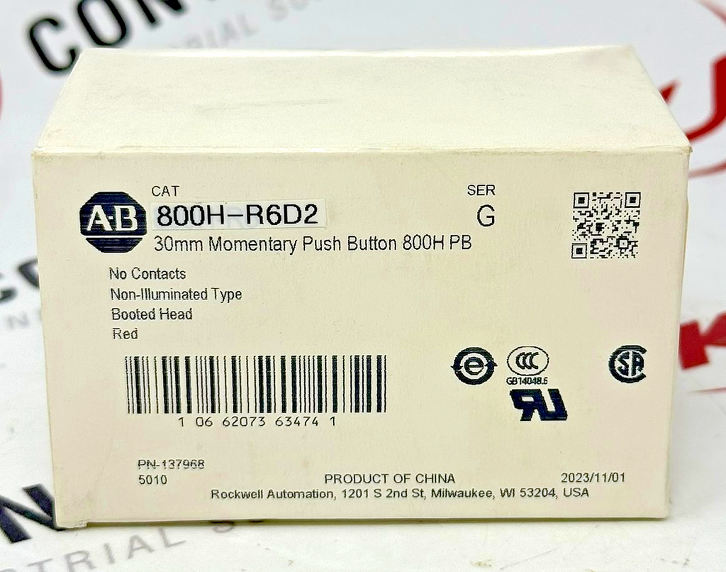 Allen-Bradley 800H-R6D2 30.5mm Red-Booted Momentary Push Button 1NC (Open Box)