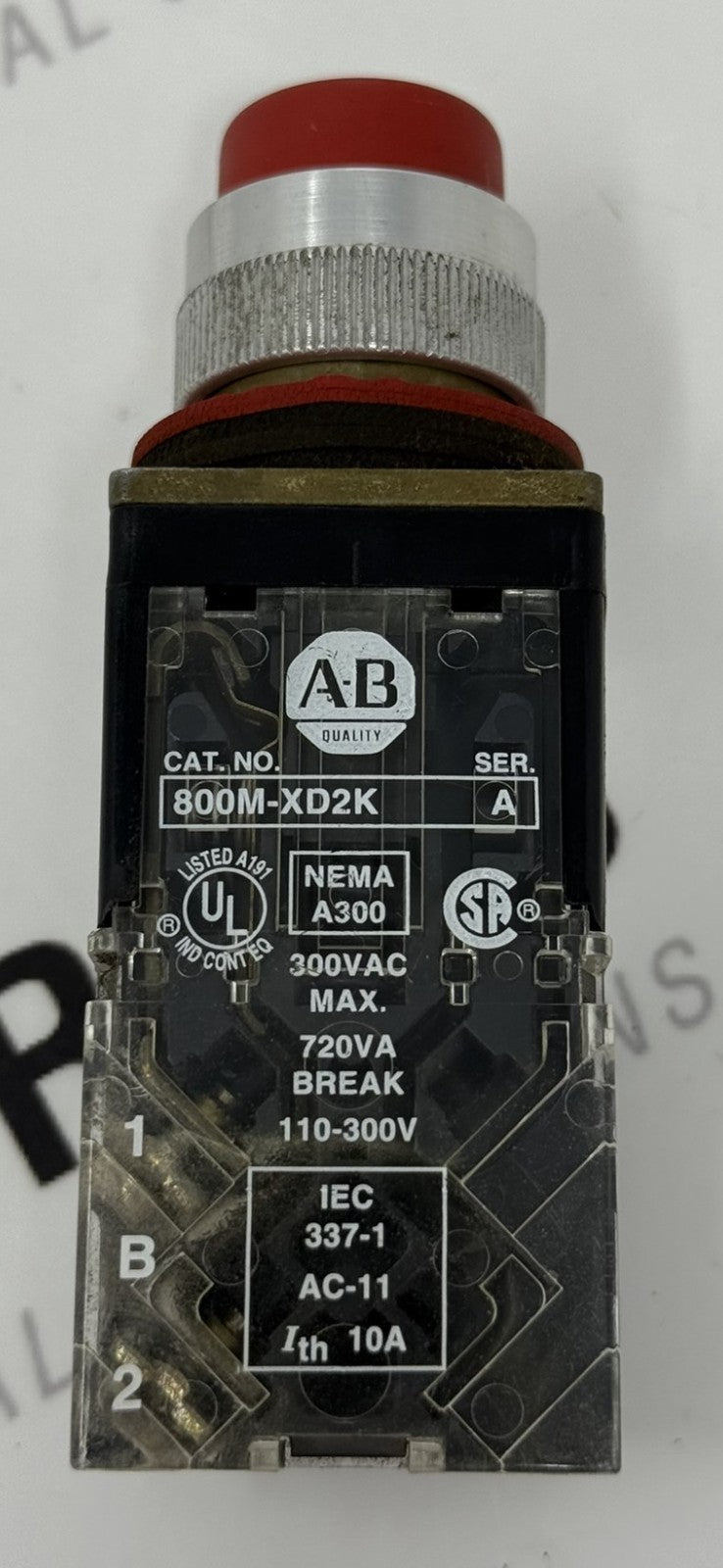 Allen-Bradley 800MR-B6 Red Push Button w/ 800M-XD2K Contact Block