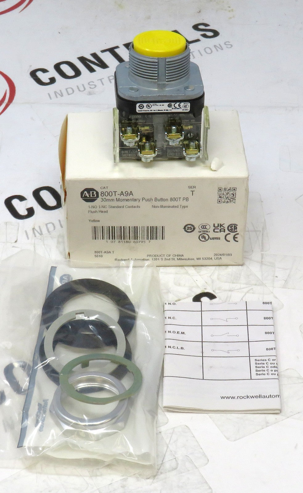 Allen-Bradley 800T-A9A Momentary Yellow Push Button 30mm 1NO 1NC Flush Head
