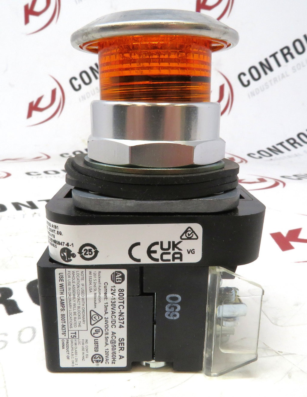 Allen-Bradley 800T-FXNQH2AA7 30mm Amber Push-Pull Pilot Light 12-130V AC/DC