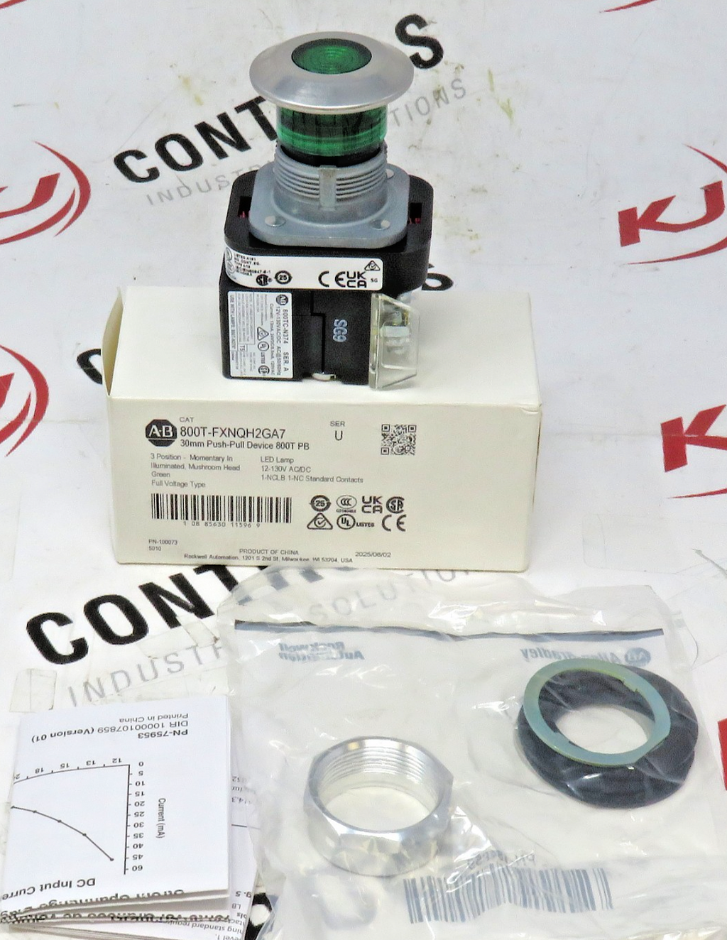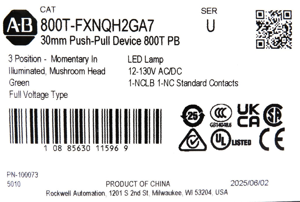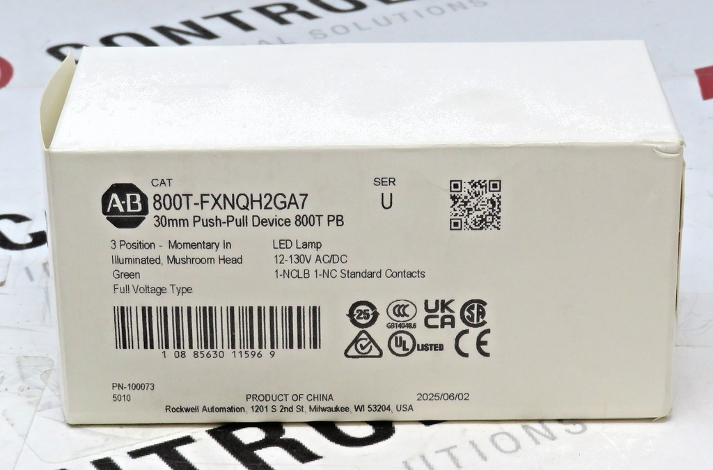 Allen-Bradley 800T-FXNQH2GA7 30mm Green LED Push-Pull Pushbutton (Open Box)