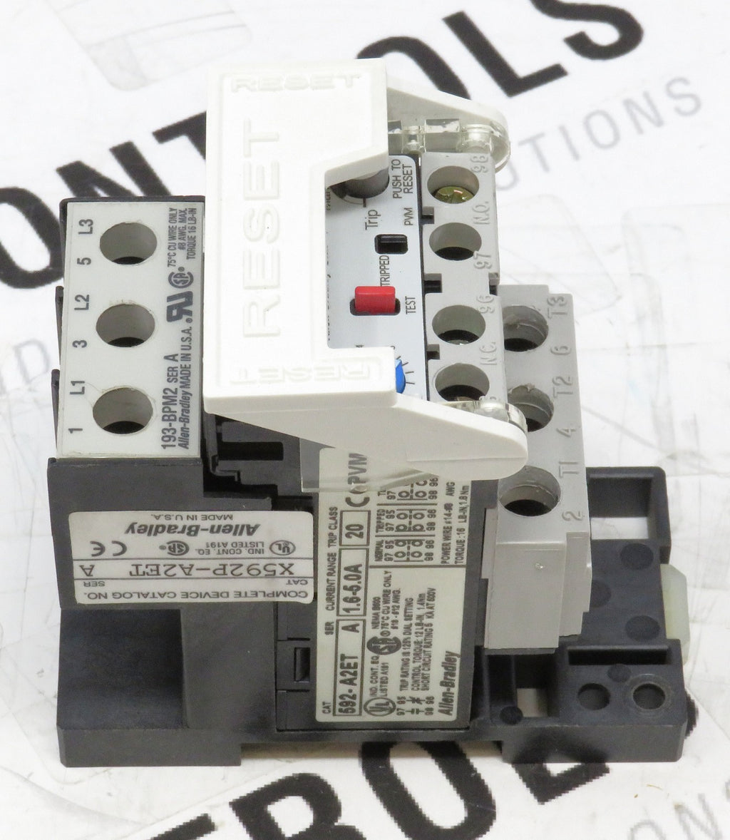 Allen-Bradley X592P-A2ET Overload Relay 1.6–5A Class 20 w/ 193-BPM2 Base