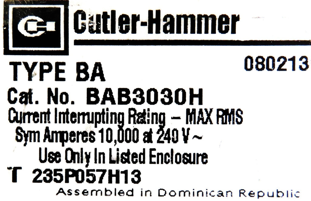 Eaton Cutler-Hammer BAB3030H 3P 30A 240V 10kA Circuit Breaker