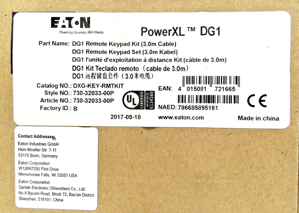 Eaton DXG-KEY-RMTKIT, DG1 Remote Keypad Kit (NO CABLE - BEZEL ONLY)