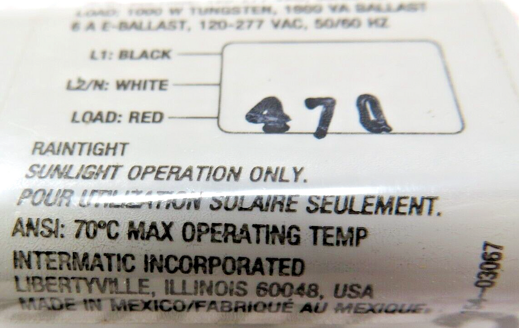Intermatic EK4136S PhotoControl 120-277V Stem MNT 1000W Tungsten 1800VA Ballast