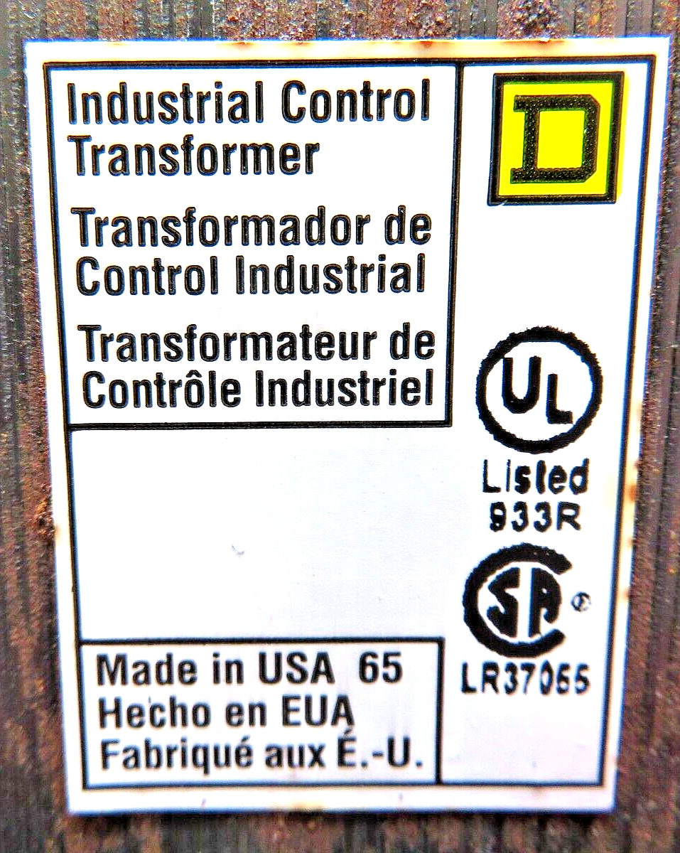Square D 9070EL3D5 Control Transformer 150VA 550/600V to 110/120V