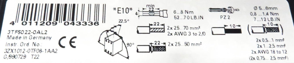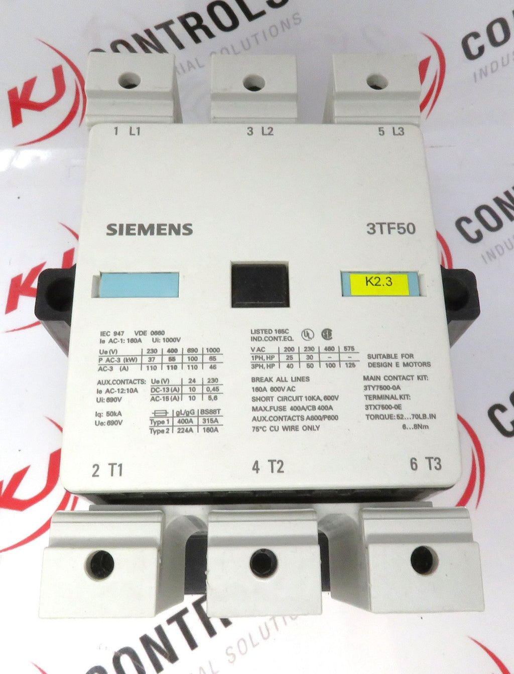 Siemens 3TF5022-0AL2 3-Pole 160A Contactor 230VAC Coil 2NO+2NC