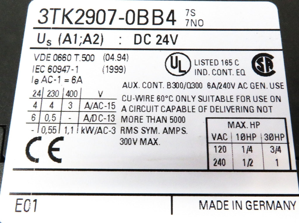 Siemens 3TK2907-0BB4 Safety Expansion Module 24VDC 7NO DC Solenoid