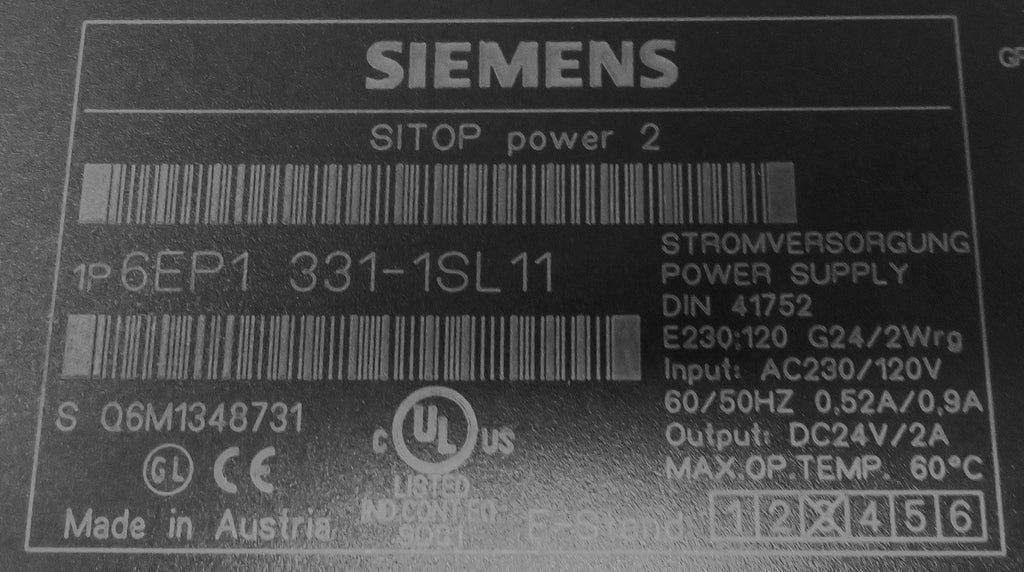 Siemens 6EP1331-1SL11 SITOP Power 2 Power Supply 24VDC 2A 120/230VAC S7-300
