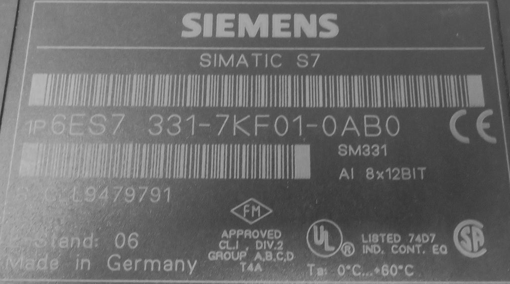 Siemens 6ES7331-7KF01-0AB0 SM331 S7-300 8 AI Module 12 Bit Analog Input