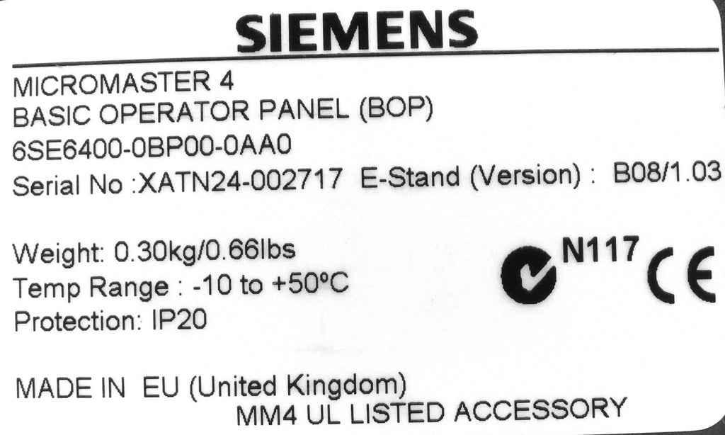 Siemens 6SE6400-0BP00-0AA0 Micromaster 4 Basic Operator Panel BOP Keypad