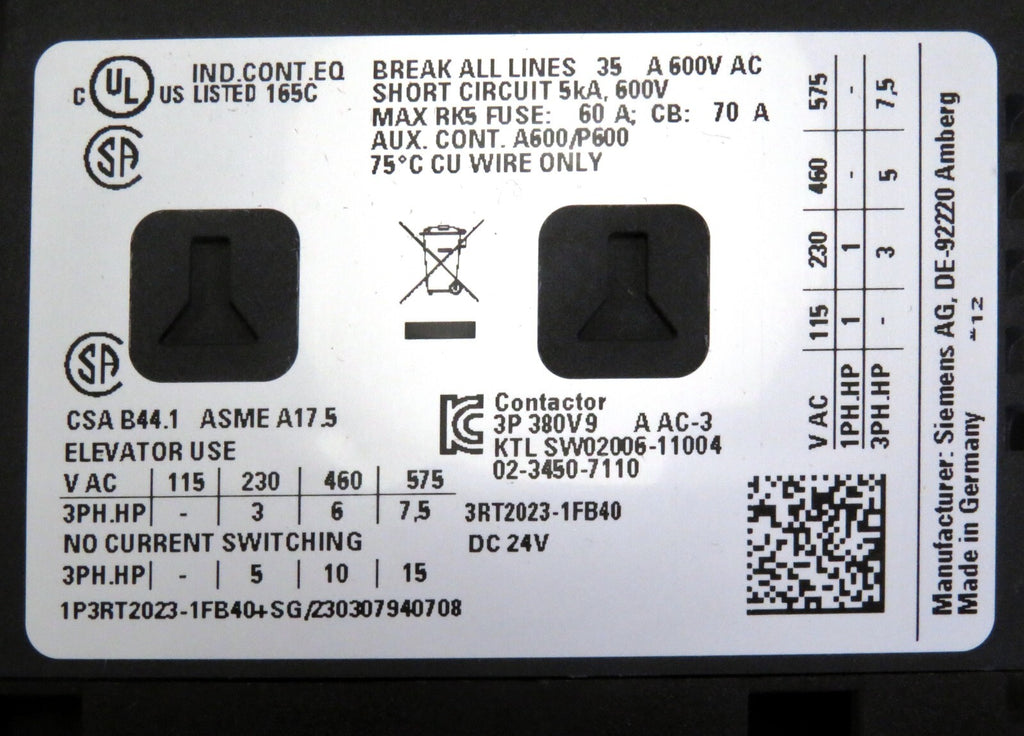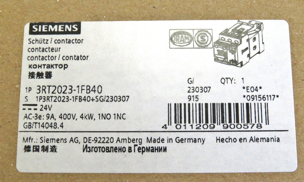 Siemens Power Contactor 3RT2023-1FB40