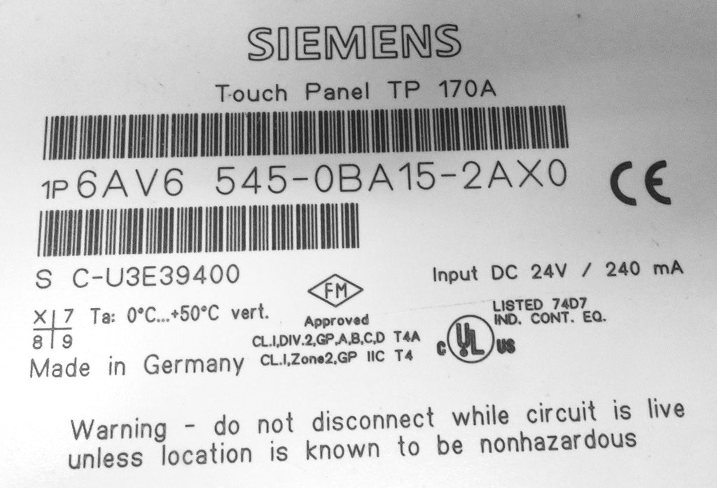 Siemens 6AV6545-0BA15-2AX0 SIMATIC TP170A 6" Touch Panel HMI