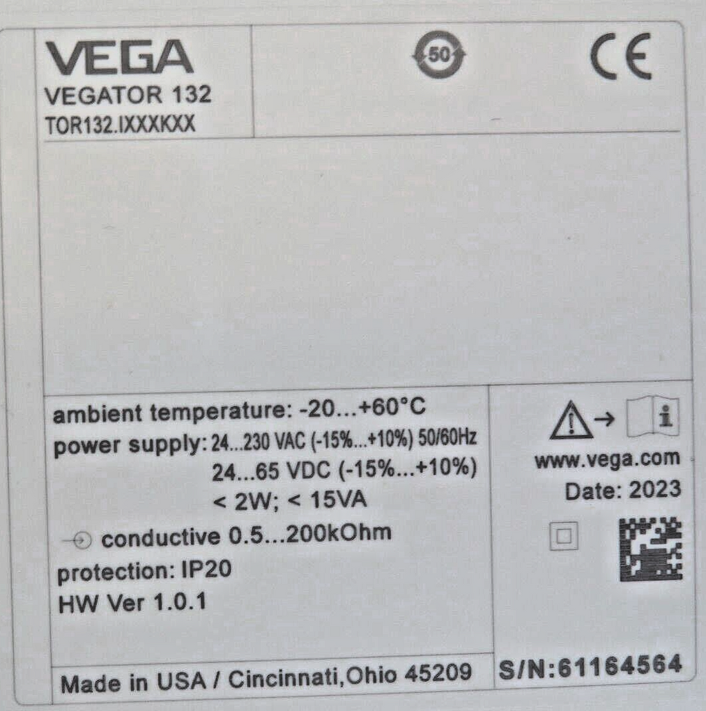 VEGA Vegator 132 TOR132.IXXXKXX CNTRL. For Level Detection For Conductive Probes