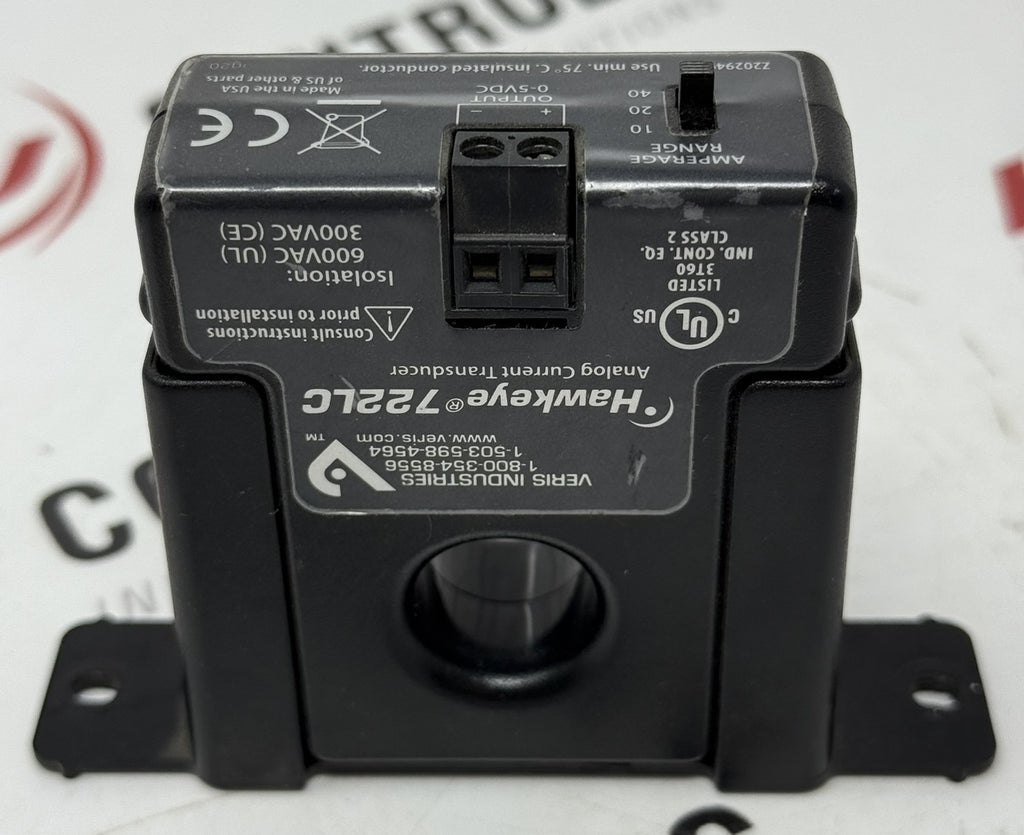 Veris Hawkeye 722LC Current Transducer 0–10/20/40A 0–5VDC Output 600V