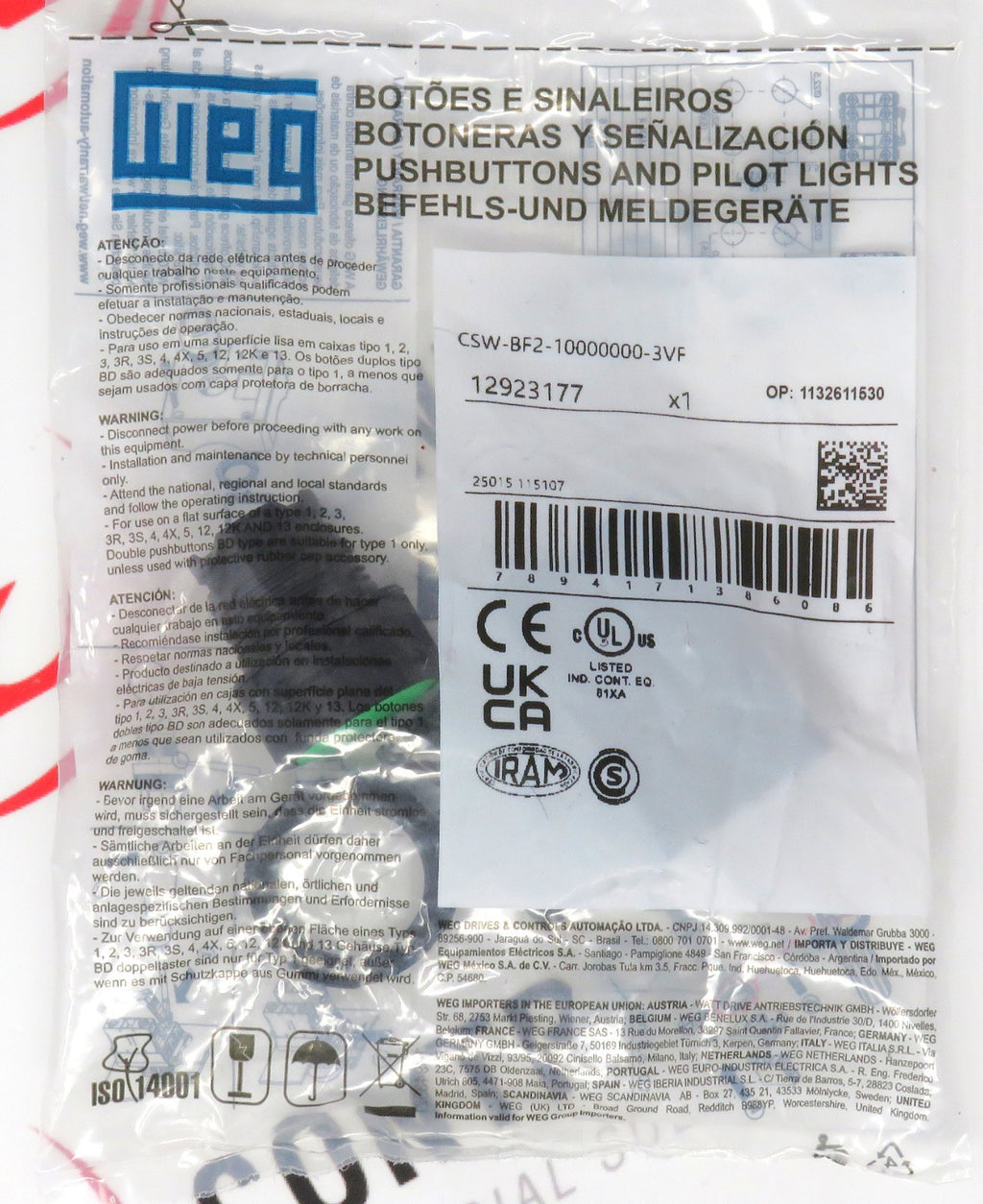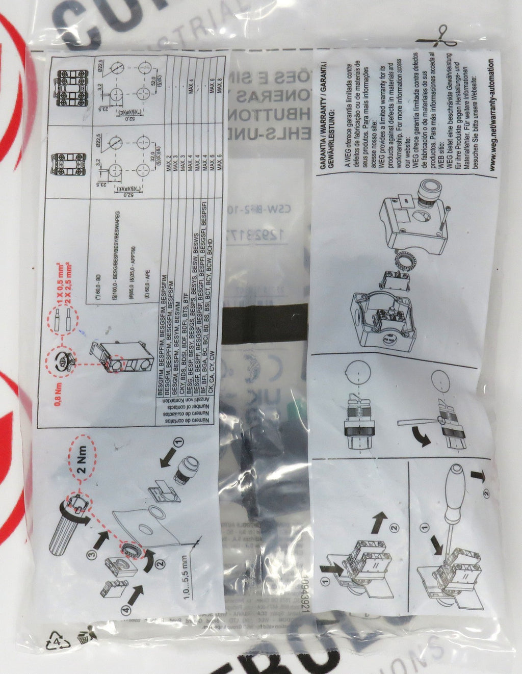 WEG CSW-BF2-10000000-3VF Green 22mm Flush Momentary Pushbutton NO Contact