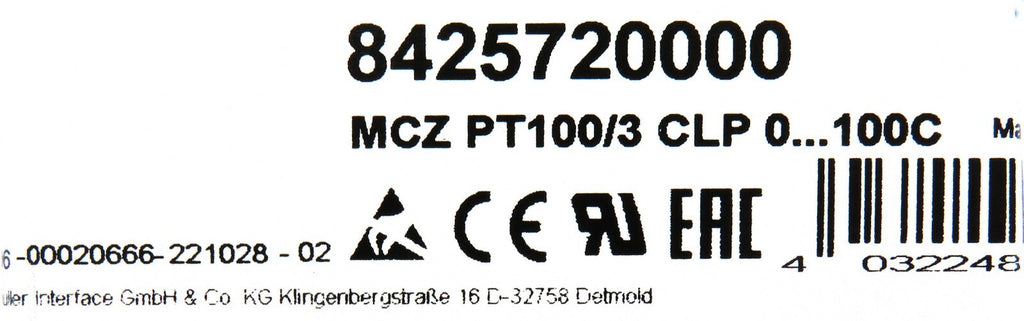 Weidmüller 8425720000 MCZ PT100/3 CLP 0–100°C Temp Transducer 4–20mA DIN Rail