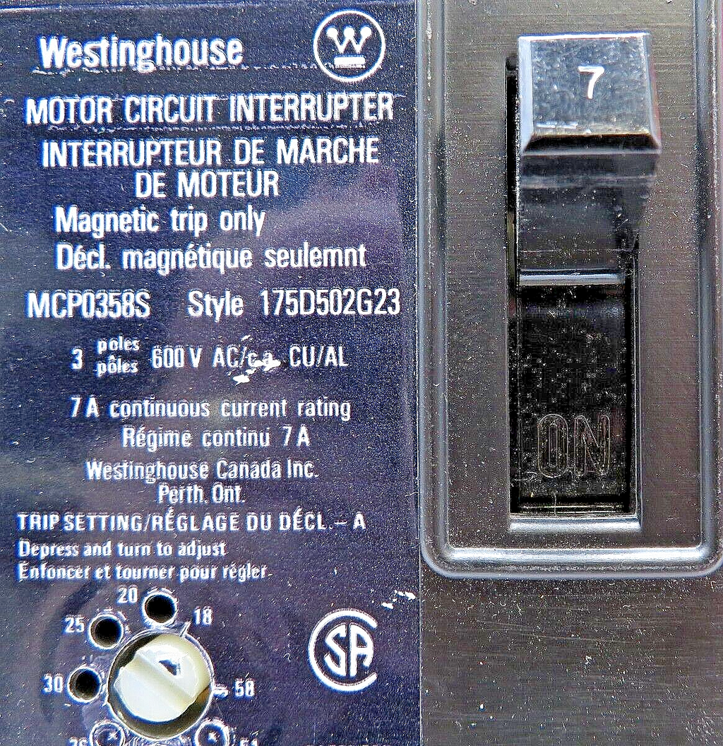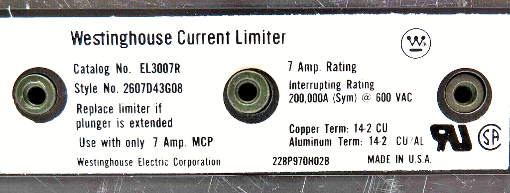 Westinghouse MCP0358S Circuit Breaker / Westinghouse EL3007R Current Limiter