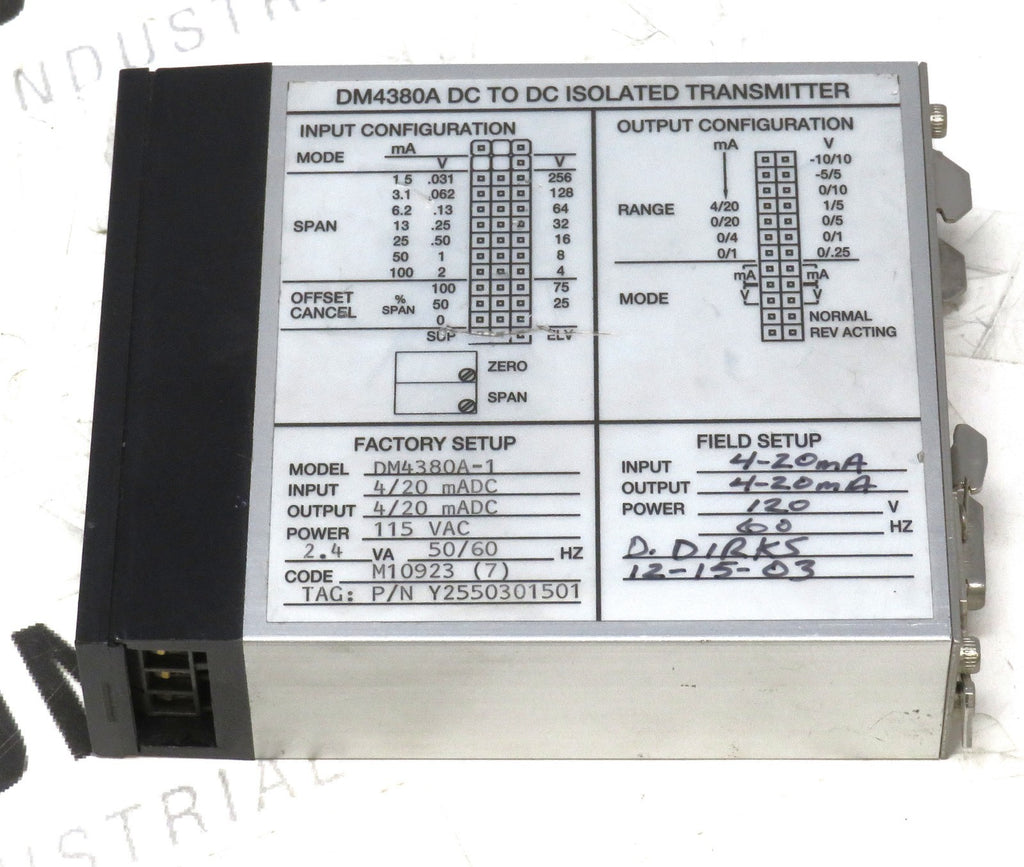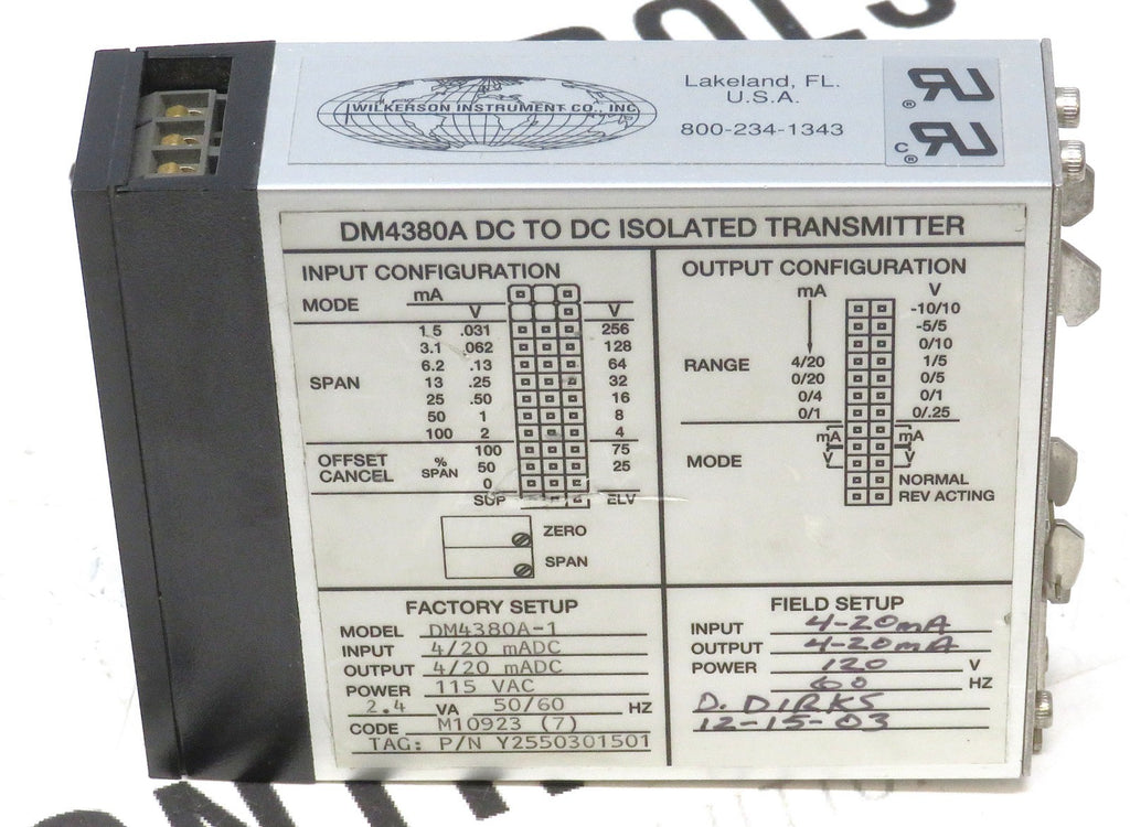 Wilkerson DM4380A-1 DC to DC Isolated Transmitter 4-20mA 115VAC DIN Rail